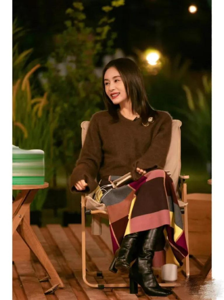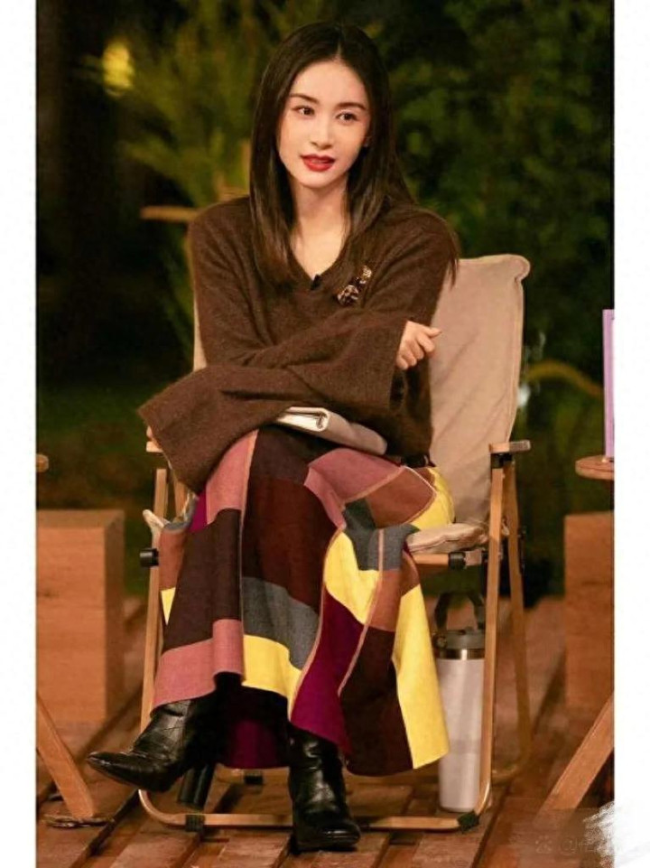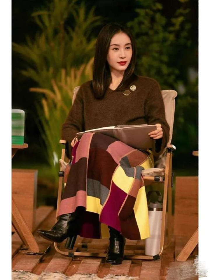被王子文的衣品折服! 穿棕色毛衣搭配格纹半身裙时髦高级又洋气!